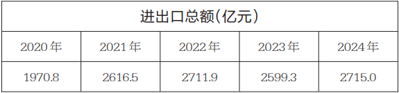开放步伐持续加快 进出口总额创入世以来历史新高 “十四五”以来,泉州持续开展“抓开放招商促项目落地”专项行动,深化推进内外贸高质量发展,获评全省营商环境标杆城市,全市固定资产投资年均增长8.1%,比“十三五”时期年均增幅高0.6个百分点。2024年,全市进出口总额2715.0亿元,创2001年入世以来历史新高;接待境外游客70.96万人次,比2020年增长101.8%;入境游客旅游总花费8.94亿美元,比2020年增长260.5%。