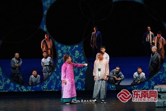 话剧《骆驼祥子》剧照。泉州大剧院 供图 东南网10月20日讯(本网记者 谢玉妹)10月18日晚,改编自老舍原著、由方旭导演的话剧《骆驼祥子》在泉州大剧院上演。 作为老舍的代表作品,《骆驼祥子》至今已有80多年的历史,曾多次被改编成影视及舞台作品。与以往改编的作品不同,该版本话剧《骆驼祥子》,主角祥子并非由一个演员饰演,而是由徐星博、马禧克、方旭三位演员饰演不同阶段的祥子,采用跨时空对话的方式,让观众从更多层面更丰富地了解“少言寡语”的祥子,从而呈现出祥子的完整一生以及他的全部心路历程。同时,导演还将西方戏剧中常见的歌队形式巧妙地转化为“众车夫”的形象,借助车夫们的“嘴”,在舞台上描绘出了一个在众人口中的祥子形象,让观众最大程度去感受和共情祥子。 该版《骆驼祥子》共有15位优秀演员参加演出,采用全男班表演。在剧中饰演虎妞的是来自中国评剧院的国家一级演员赵震。泼辣、直率、真诚、利索……一直以来,虎妞因其鲜明的性格而被观众熟知。赵震所饰演的虎妞在舞台上一亮相,便引起观众的好奇。他运用自己多年的戏曲功底和舞台表演经验,将虎妞的直爽、泼辣的性格展现的淋漓尽致。 话剧舞台通过对立体空间的利用,灵动多变的创造出人和车厂、曹宅、街市等等环境空间,加上灯光、多媒体的渲染,为观众呈现出了一座符合现代审美气质的“北平城”。剧中祥子所处的几处重要场景,都以车轮的造型进行统一,暗喻了祥子不可逆的命运轮回。音乐上,将鼓、三弦等中国传统乐器与小提琴等西方乐器相融合,整体节奏明快又不失力量感;服装、造型更是别出心裁,除了三个祥子外,剧中的所有角色都是以车夫的形象为基础在舞台上通过服装的变化直接完成角色转换。无需暗场、转场,无需上下台,只见演员把服装“一撕”,在几秒钟的时间内,在观众的注视下完成“现场变装”,迅速从“车夫”的形象转换为所饰演的其他角色。 方旭表示,希望通过这次改编,以戏剧作为桥梁,拉近经典名著与当代年轻人之间的距离,引发今天的年轻观众对于生命个体,对于人的精神世界、对于人和社会之间的关系进行一些思考。 据了解,该剧今年已巡演20余场,2026年也是《骆驼祥子》发表90周年,将继续走遍全国。 |