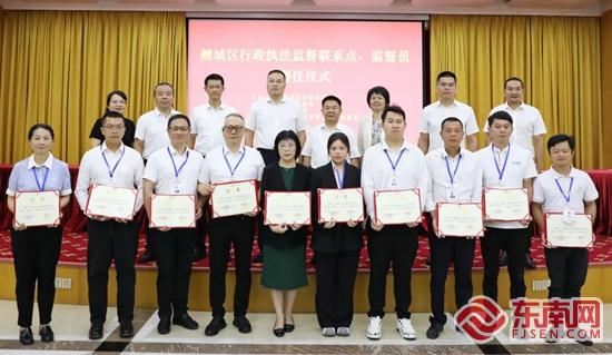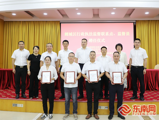 授牌仪式。李莹 摄 东南网10月20日讯(本网记者 施远圻 通讯员 李莹)为拓宽行政执法监督渠道,助力法治化营商环境建设,近日,泉州市鲤城区举行行政执法监督联系点及监督员授牌聘任仪式。 仪式现场为首批行政执法监督联系点及监督员授牌。泉州市路易斯针织服饰有限公司等4家企事业单位被确定为行政执法监督联系点;上官志鹏等10名获聘为行政执法监督员,他们是从人大代表、政协委员、企业家、新闻媒体工作者、基层工作者及台籍学生中优选聘任,具有广泛代表性。