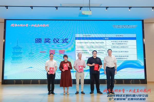 颁奖仪式现场。主办方 供图 东南网10月21日讯(本网记者 林杰)10月21日,2025年泉州市网络文明传播分享交流暨“文明泉州”主题采访报道活动启动仪式举行。活动由泉州市委宣传部、泉州市委文明办、泉州市委网信办、泉州晚报社、泉州广播电视台联合主办,旨在进一步推动网络文明建设,助力文化遗产保护,全面展示泉州市精神文明建设的丰硕成果。 汇聚网络文明力量,传播文明新风尚 “加强网络文明建设,是推进社会主义精神文明建设、提高社会文明程度的必然要求,是适应社会主要矛盾变化、满足人民对美好生活向往的迫切需要。”泉州市委宣传部副部长、文明办主任陈斌在致辞中指出,要深入学习贯彻习近平文化思想,深入挖掘泉州在文明培育、文明实践、文明创建等方面的创新做法与突出成效,努力打造有思想、有温度、有品质的新闻作品,让泉州文明故事深入人心、文明声音远播四方。 活动现场公布了2025年泉州市“网聚文明力量·共建美好泉州”主题网络文明传播活动优秀作品。该活动自今年5月启动以来,共征集到157部短视频作品。经专家评审,35部作品脱颖而出,其中《点滴平凡善举 点亮晋江城市文明》《文明厝仔·从志愿星火到文明新村》《做大山教育的“钉子”——坚守乡村36年的道德模范、人民教师李梅花》《诚信如瓷》等4部作品荣获一等奖,另有7部作品获二等奖、12部作品获三等奖、12部作品获优秀奖。 在作品分享环节,获奖代表深情讲述了创作背后的初心与坚守。晋江市委宣传部精神文明创建科科长吴文博分享了市民群体以善举温暖城市的感人故事;石狮市蚶江镇厝仔村乡村振兴导师许明聪介绍了家乡厝仔村从志愿微光汇聚为全国文明村的蜕变历程;坚守乡村教育36年的泉州市道德模范李梅花老师,动情回顾了自己扎根洛江区虹山乡、教书育人的无悔选择;陶瓷文化艺术创作者、“福建好人”张明贵则阐释了以“诚信如瓷”为内核的人生信念与经营哲学。大家真挚的讲述引发强烈共鸣,让现场观众深刻感受到网络文明作品的感染力与正能量。 |
