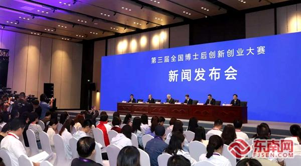 25日,第三届全国博士后创新创业大赛新闻发布会举行。东南网记者 陈诗婷 摄 东南网10月25日讯(本网记者 陈诗婷)第三届全国博士后创新创业大赛总决赛将于10月26日在晋江国际会展中心正式开幕。记者从今日举行的新闻发布会上获悉,这场聚焦博士后人才创新活力的全国性赛事,1721个入围项目将在10月25日至27日的竞赛周期内展开角逐,一场汇聚海内外智慧的创新盛宴即将登场。 本届大赛由人力资源社会保障部与福建省人民政府联合主办,全国博士后管委会办公室、中国博士后科学基金会、福建省人力资源和社会保障厅、泉州市人民政府共同承办。大赛以“博创引领四十载 智汇赋能向未来”为核心主题,旨在通过“以赛促创、以赛促融、以赛促引”,推动博士后科研成果与产业需求深度对接。 发布会上,主办方介绍,本届大赛构建“4组别+7赛道”的竞赛体系,设置28个竞赛场馆,涵盖创新赛、创业赛、海外境外(“一带一路”)赛、揭榜领题赛四大组别,覆盖新一代信息技术与人工智能、高端装备制造与机器人、新能源与节能环保、新材料与石油化工、生物医药与大健康、现代农业与食品及其他行业七大领域。 赛事设置金、银、铜奖及优胜奖。大赛组委会特别邀请18名院士专家、知名企业家、专业投资人组成专家指导委员会,为大赛提供高水平的赛事指导和评审指导。总决赛共邀请252名行业专家、创投专家担任评委,对参赛项目进行专业评审。