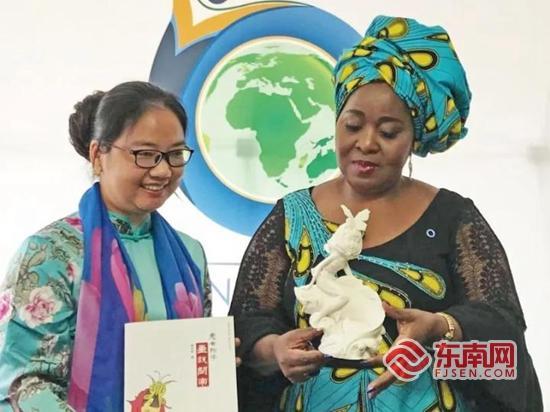 池珠香不遗余力向世界推介“德化瓷”。受访者 供图 全国文明家庭成员池珠香。林婕 摄 |