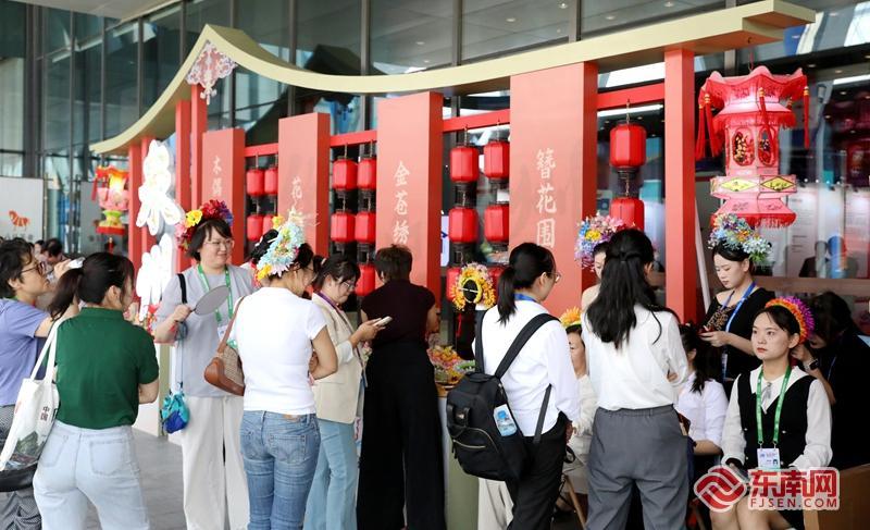 参展观众在项目对接交流之余,体验泉州蟳埔簪花围。东南网记者 陈培源 摄