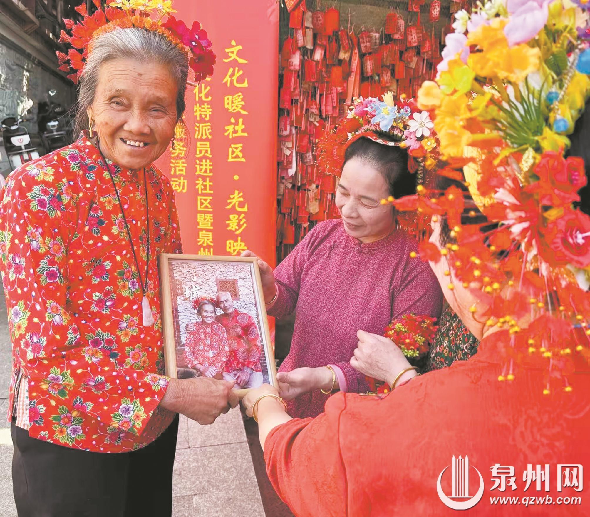 “来,看我这里。”“你们靠得近一点,对,保持笑容。”……现场,摄影家们或蹲或站,用心捕捉着每一位老人脸上绽放的笑容。镜头里,一位位“老蟳埔”的形象被瞬间定格,那被海风和时光雕刻过的面容,在光影的雕琢下,焕发出独特的魅力与光彩。与此同时,在蟳埔民俗文化馆内,另一项暖心服务也在同步进行。志愿者们利用便携式打印设备,将刚刚拍摄好的照片进行现场打印,并放入实木相框。当老人们从志愿者手中接过装裱精美、还带着些许打印机余温的照片时,惊喜与感动溢于言表。