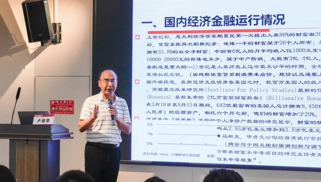 讲座特邀厦门大学经济学院教授、博士生导师,厦门大学宏观经济研究中心宏观经济分析与预测研究室主任,瑞士EU商学院特聘博导卢盛荣教授担任主讲嘉宾。卢盛荣教授以《当前国内外经济金融发展态势与投资策略》为题,带来一场高水准、前瞻性的专题分享,现场座无虚席,反响热烈。
