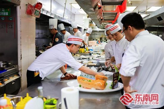 颁奖仪式现场。主办方 供图 东南网10月31日讯(本网记者 黄雨昕)10月30日,2025年丰泽区“簪花筵”美食评选暨山海厨王烹饪技能竞赛举行。 本次活动以“传承闽菜技艺,创新美味佳肴”为宗旨,深度挖掘“簪花筵”文化精髓,通过烹饪技能竞技展现丰泽美食的独特风味与创新理念,更搭建了餐饮从业者交流学习的平台,为丰泽区餐饮行业高质量发展注入动力,也为泉州申创“世界美食之都”添砖加瓦。 经过紧张的竞技比拼与多维度的严格评审,本次竞赛各项荣誉也在颁奖晚会上逐一揭晓。其中,参赛选手施心苗斩获竞赛一等奖,获“2025年度丰泽区山海厨王”称号。竞赛还评选出丰泽区十大名小吃、十大名菜、十大名厨等,此外,现场还颁发“最佳菜品推广奖”“最佳菜品创意奖”“最佳营养风味奖”“‘簪花筵’最佳推广奖”等4项个人单项奖和10家2025年度丰泽区餐饮名店等奖项。 “此次比赛对于我们新生代的厨师来说具有很大的鼓舞作用,站在赛场上和同行、前辈们交流时,我也更加确定了未来要用菜品讲好泉州文化的方向。”作为本次“丰泽区十大名厨”之中最年轻的一位,辛欣告诉记者,他未来也会将泉州文化、丰泽文化更好地融入菜品中去,发挥年轻厨师的创意与巧思,让大家在每一道菜肴中感受文化的传承,不仅认可“泉州味道”,更记住“泉州故事”。 “此次比赛我准备了近一个月的时间,希望带给食客朋友们不一样的全新体验,所以在菜品的研发和创新上下足了功夫。”获评本次“丰泽区十大名厨”荣誉的参赛选手曾振辉表示,未来将会更加用心研究泉州文化,创新出更多不一样的闽菜表达。据悉,此次他带来的“一品鸭皇土猪脚”获得竞赛“最佳菜品创意奖”、“金沙姜茸脆鱼饼”获评”丰泽区十大名菜”。 此次“簪花筵”评选与山海厨王烹饪竞赛,是丰泽区推动“文旅+美食”深度融合的关键举措,是对闽菜技艺的“薪火相传”,是对“簪花筵”文化的“活态弘扬”,更是对餐饮人才的“精准赋能”。未来,丰泽区将持续以美食为纽带,深化“文旅+美食”融合发展,助力餐饮行业迈向更高质量发展新阶段。 参赛厨师们正在认真准备比赛。主办方 供图 |