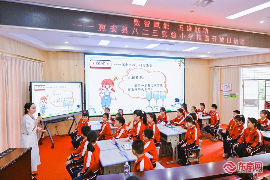 东南网11月5日讯(本网记者 林杰 通讯员 林凯莉 郭晓琳)红色宣讲润童心、名师课堂展特色、科技体验显风采……11月4日,惠安县八二三实验小学以“数智赋能 五维联动”为主题举办校园开放日活动。县人大代表、县政协委员、家长代表、社区人士等400余人走进校园,近距离感受学校办学成果。活动同步开启线上图片直播,全方位展现优质名校的育人风采。