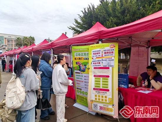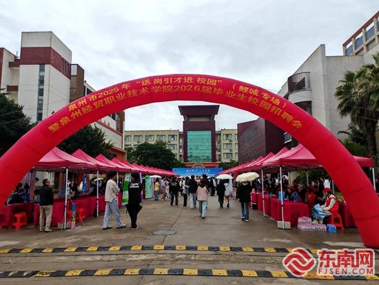 招聘会现场。东南网记者 施远圻 摄 东南网11月5日讯(本网记者 施远圻)“我们公司实习期工资最低5500元,转正后工资可达到7500元到10000元……”4日下午,虽然天空仍下着小雨,泉州经贸职业技术学院校园内十分热闹,120家企业人力负责人带着优质岗位向该校2026届准毕业生抛出橄榄枝。 据了解,为抢抓2026届高校毕业生求职就业工作先机,强化高校毕业生公共就业服务,鲤城区人力资源和社会保障局联合泉州经贸职业技术学院、鲤城区委人才办举办“海丝泉州·人才港湾”泉州市2025年“送岗引才进校园”活动(鲤城专场),精准为高校毕业生求职和用人单位招聘搭建对接平台。
