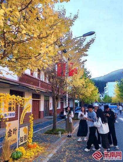 街道被银杏装饰成“黄金大道”。郑智得 摄 东南网11月17日讯(本网记者 林婕 通讯员 郑智得)近日,德化县上涌镇东街的银杏进入最佳观赏期。道路两旁,挺拔的银杏树叶片金黄,灿若披甲,将古镇东街装点成一条流光溢彩的“黄金大道”,吸引众多游客和摄影爱好者前来拍照打卡。