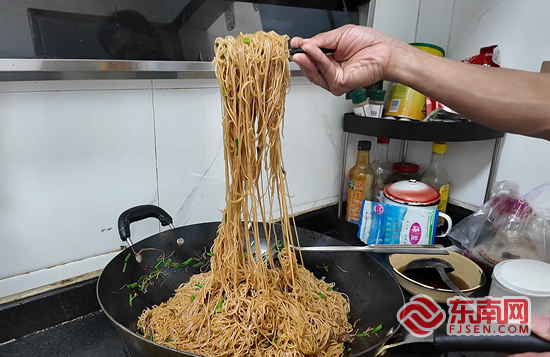 苏春贵在家展示他的素炒米粉。东南网记者 陈培源 摄 |