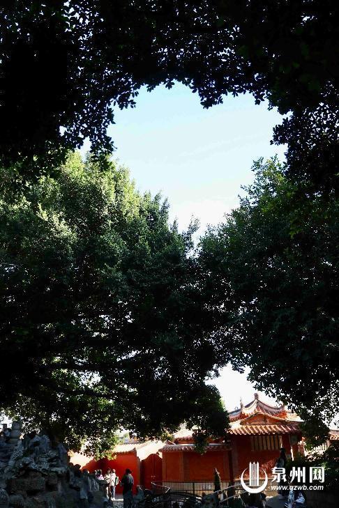 “抬头就能看到爱心,太浪漫了吧!”近期,有不少游客在社交平台分享出在泉州市区开元寺打卡的“爱心天空”——多棵古树的枝叶互相缠绕,树叶轮廓勾勒出一颗完整饱满的爱心,这一自然形成的景观快速走红。