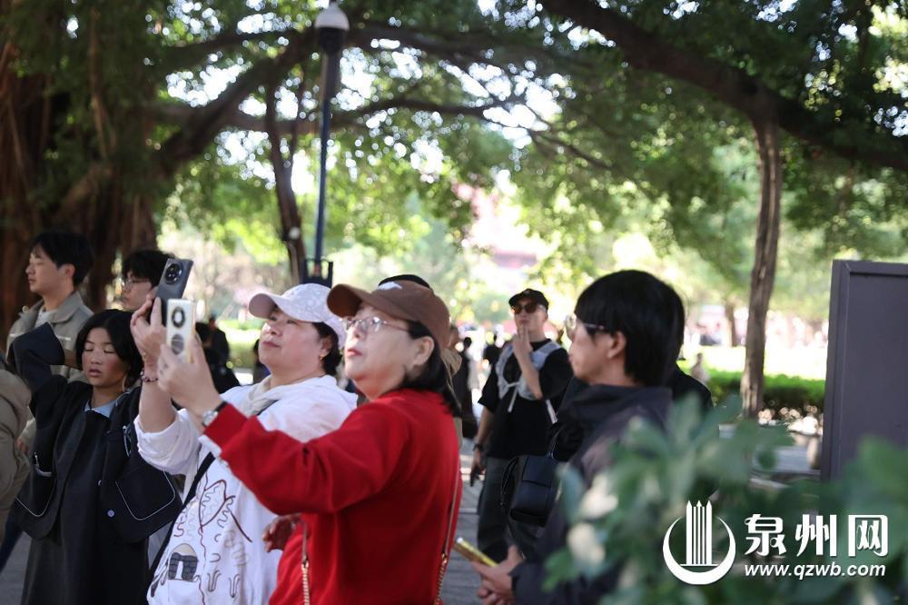 “爱心天空”吸引游客前来打卡 昨日上午,记者现场看到,这处“爱心景观”位于开元寺镇国塔(东塔)后方的假山处,以清澈的蓝天为幕,与远处的红砖瓦墙相映成趣。阳光穿过枝叶缝隙,光影交错更显灵动,为爱心轮廓镶上一层金边。 “刚好在泉州旅游,刷到视频就来打卡了,这颗爱心真好看。”来自浙江的黄女士用手机记录下来这份美好,并分享给了她的家人朋友。和黄女士一样,许多游客在此处停下了脚步,或站或蹲,寻找着最佳的拍摄地点,然后不约而同地举起手机,力争拍出一颗最完美的爱心,定格这一份大自然赠予的浪漫。“古树+爱心+天空的组合,太适合拍照啦。”头戴簪花的林女士在摄影师的指导下摆着姿势,留下与“爱心天空”的最美合照。 社交平台上,相关话题持续升温。有网友称这颗爱心为“树之心”,与仁寿塔(西塔)前的“放心石”相呼应。也有本地网友留言:“经常去开元寺,从来没发现抬头也有惊喜,下次一定要去现场欣赏。”这份惊喜,不仅成为游客打卡的新地标,也为泉州这座历史文化古城增添了一份温馨与柔软。 开元寺的工作人员告诉记者,这几棵树树龄较长,之前没发现树叶之间形成这么美的形状,欢迎大家打卡,也希望大家在打卡的同时注意安全,爱护古树和环境,让这份自然赠予的美好留存得更久。(泉州晚报融媒体记者苏珊镕 陈小阳 文/图) |