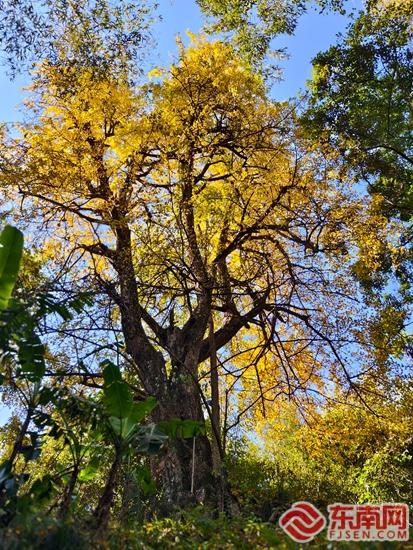 旗袍爱好者在银杏树下。邢志涛 摄 据介绍,杨梅丁荣角落有27株树龄超500年的古银杏,是泉州唯一一处古银杏树群。其中最年长的 “银杏王”已历经670载风雨,树高26米,树冠直径达16米,是名副其实的“活化石”,每年这个季节均吸引了大量游客前来观光游览,是藏在山林深处的赏秋打卡胜地。