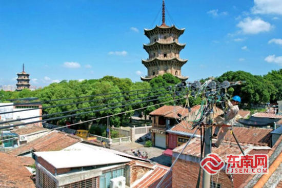 图为国网泉州供电公司组织人员拆除古城老旧电线杆。国网泉州供电公司 供图