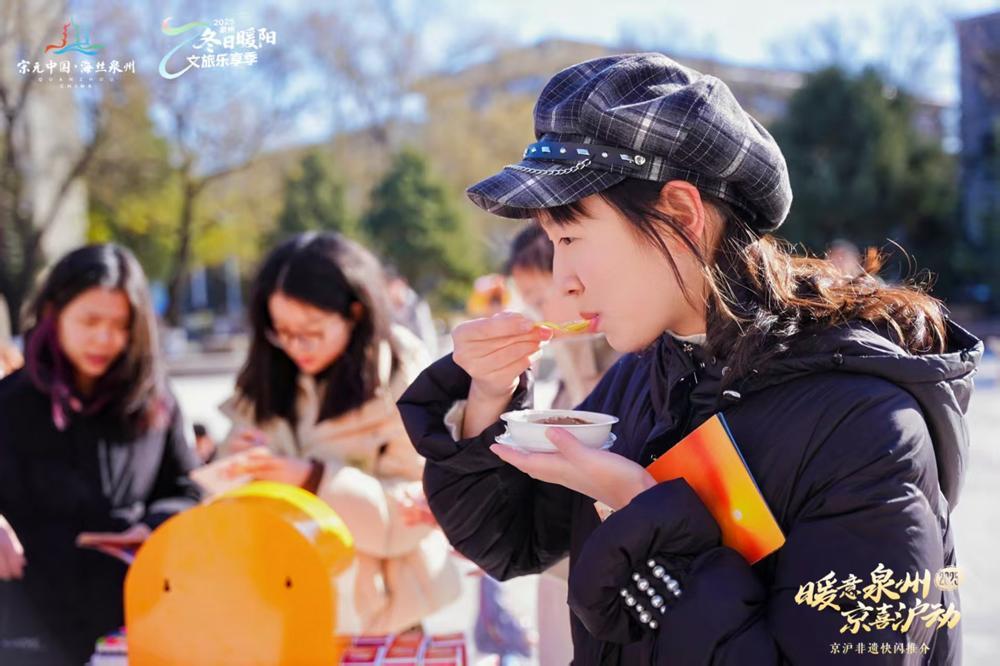 泉州作为宋元中国的世界海洋商贸中心,兼具非遗韵味与生活温度。此次京沪快闪是泉州文旅“走出去”的重要举措,通过可看、可玩、可尝的多元形式,让北方市民在冬日里感受闽南文化的鲜活与温润。当千年非遗古韵邂逅都市摩登气息,这场跨越南北的文化之约,呈现出古今相映、南北和鸣的独特魅力。活动旨在通过高校与城市地标的联动传播,让更多人了解泉州的文化底蕴与旅游资源。这个月月底,泉州的暖冬暖意浸润京沪街头,诚邀市民赴一场文化与美食交织的冬日暖宴,感受“一生至少要去一次”的城市魅力。(东南早报融媒体记者张素萍 通讯员曾世彬 文/图)