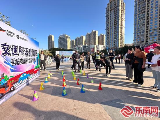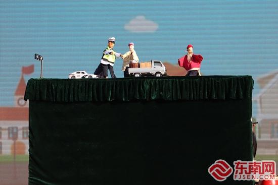 掌中木偶表演《文明出行》。东南网记者 林婕 摄 活动设置了“安全知识问答区—智慧通行站”“交通标志展示区—交通标志大转盘”“避障挑战区—正确配戴头盔骑行避障挑战赛”等6个主题互动区,参与者凭入场领取的“安全骑行护照”(集章卡)参与挑战。在“智慧通行站”,市民通过现场答题赢取最多3个印章;“交通标志大转盘”前,大家在10秒内快速识别指针指向的交通标志;“头盔骑行避障挑战”中,市民在交警指导下正确佩戴头盔,完成慢速骑行避障任务;“交通标语欢乐套圈”区,参与者投掷套圈赢取最多5个印章;“趣味标语”区,市民根据题目即兴创作交通安全标语。
