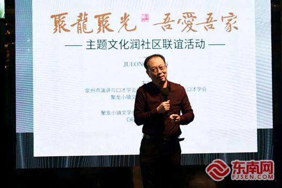 活动现场。主办方 供图 东南网12月10日讯(本网记者 吴雅艺)12月8日,泉州市演讲与口才学会党支部、聚龙小镇文联共同举办主题文化联谊活动,以“文艺展演+交流分享”的形式,为社区居民带来了一场沉浸式的艺术盛宴。 泉州市演讲与口才学会会长耿永泉表示,此次走进全国文明社区聚龙小镇,希望通过会员们的精彩演绎,将语言艺术送到基层,深化与聚龙小镇文联的合作,搭建更多文化交流平台,让语言的力量浸润人心,为推动社区文化建设贡献学会力量。