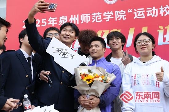 泉州师范学院学生和运动员李发彬合影。陈旭鹏 摄 东南网12月12日讯(本网记者 谢玉妹)12月11日上午,2025年“运动校园“主题系列活动——“全运健儿进校园“走进泉州师范学院。 李发彬、许杰、杨静雯、黄家骏、陈海威、林绮雯、陈宝金、赵永超、谢雪婷等9位在第十五届全运会上载誉归来的体育健儿与师生面对面交流,传递中华体育精神,共话青春奋斗之路。 泉州师范学院校长陈昌萍指出,全运健儿是中华体育精神的践行者,此次活动既是一场体育文化盛宴,更是一堂生动的“大思政课”,希望同学们从健儿们的奋斗故事中汲取力量,养成终身锻炼的习惯,在体育运动中健全人格、锤炼意志。 现场,举重奥运冠军李发彬结合自身二十余年运动生涯,分享了与泉师“善学如泉 正心至大”校训同频共振的成长历程。他说,从体校基础训练到全运会三连冠,“善学”让他不断精进技术,“正心”让他在伤病与挫折中坚守为国争光的初心。击剑运动员陈海威以“以剑为炬”为题,讲述了自己从队里“最笨的那个”到世界冠军的逆袭之路,用“笨功夫攒底气”“与放弃较劲”的经历,诠释了体育精神的真谛。 在圆桌论坛环节,健儿们围绕“追梦与初心”“突破与超越”“压力管理与生活平衡”等五个篇章,分享了各自与运动结缘的故事、克服瓶颈的心得、缓解压力的方法。李发彬回忆起级别调整从零开始的艰辛,杨静雯讲述了突破自我局限的历程,黄家骏、陈海威等就“超越自己”与“超越对手”的辩证关系展开深入探讨。 在互动提问环节,学生代表围绕跨专业学习、地域文化与竞技精神、体育装备升级等话题向健儿们请教,健儿们结合自身经历一一作答,现场交流氛围热烈而深刻。 同学们纷纷表示,将以全运健儿为榜样,把拼搏精神、团队意识融入学习生活中,厚植爱国情怀,在青春的赛道上奋力奔跑、逐梦前行。 |