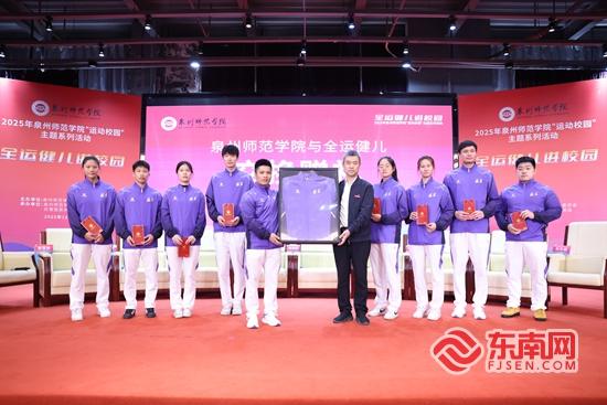 活动中,泉州师范学院与全运健儿们互赠纪念品。陈旭鹏 摄