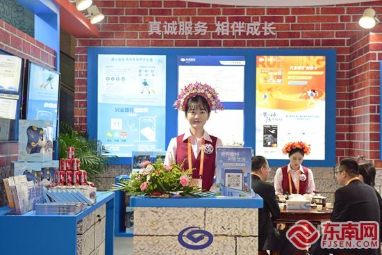 兴业银行泉州分行的展位上,工作人员头戴具有泉州特色的簪花围。东南网记者 林婕 摄 |