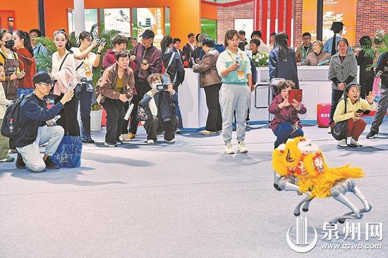 福州馆的表演区,演员们以“三条簪”非遗妆造演绎传统舞蹈。 泉州网12月13日讯(融媒体记者 许钹钹 王耿华 通讯员 陈锘冰 文\图)茶香袅袅中,提线木偶灵巧泡茶;光影交错间,机器狗随乐起舞。在这里,既可以用AI生成漫画画像,也可以请非遗大师剪出剪纸人像……12月12日上午,以“畅游八闽 合作共赢”为主题的2025福建旅游交易会,在“海丝”起点、双遗之城泉州南安的福建成功国际会展中心正式启动。这场汇聚全球近800家参展商、展览面积达1.5万平方米的文旅盛会,将持续至周日。周末市民朋友可前往沉浸式逛展会、尝美食、赏非遗,共享文旅发展红利。