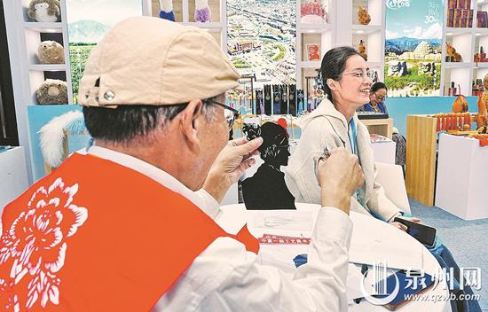 闽宁协作展区,非遗剪纸大师鲁卫东根据体验者的模样现场创作剪影。 协作“动”起来 从海峡情深到山海协作 立足“海丝”起点优势,本届旅交会深化跨区域文旅协作,推动“以旅彰文”落地见效。现场特别设置了“海峡同心”港澳台展区,集中推介特色文旅资源。更具深远意义的是,展会发布了“清新福建·泉州倡议”,并与多家国际及港澳台旅行商签订客源互送协议,推动福建文旅走向更广阔市场。 “山海情”的协作篇章也在续写。9位远道而来的非遗大师、充满塞上风情的特色产品,宁夏回族自治区文化和旅游厅打造的“闽宁协作”展区吸引了众多目光。67岁的宁夏剪纸非遗传承人鲁卫东现场为游客剪制人像,手法娴熟,令人赞叹。他特意为即将到来的闽宁协作三十周年创作了一幅作品:“高铁象征发展,宁夏的凤凰碑和泉州的西塔是连接两地的桥梁,扬帆的船代表泉州这座海丝城市。”他动情地表示,这份“山海情”已深入骨髓。 惠民“实”起来 签约合作与消费福利双轮驱动 本届旅交会设立“文旅新质生产力”专区,也成为一大亮点。AI导览、人形机器人等数字化产品提供了未来旅游的智能解决方案。首次设立的泉州南安低空经济展区,展示了低空旅游、无人机表演等新兴业态。中国电信、移动、联通“三大运营商”联袂打造的沉浸式数智空间,让观众直观感受科技赋能文旅场景创新的无限可能。 启动仪式上,福建省旅游发展集团牵头完成了四轮覆盖跨区域旅游年卡合作、国际客源互送、金融科技战略合作、文旅行业生态合作等四大核心领域的重磅签约,涉及51家单位,为产业发展凝聚合力。 与此同时,多项惠民举措实实在在落地:“清新福建”文旅惠民卡与“美丽中国”实现十余个省区文旅权益互通;“逛展抽奖”活动送出数千张景区门票、酒店券及丰富礼品;专场直播则直接将惠民资源转化为消费动能。 据悉,本届旅交会由福建省文化和旅游厅、泉州市人民政府指导,福建省旅游发展集团主办,是首次落地泉州南安举办。