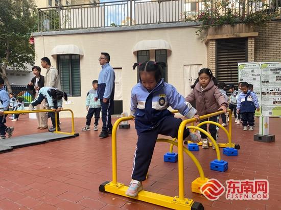 孩子们正在进行户外运动,东南网记者 黄雨昕 摄 东南网12月16日讯(本网记者 黄雨昕)为进一步推动名园⻓跨域交流,促进优质教育资源整合, 持续赋能学前教育高质量发展,12月14日—15日, “新时代中小学名师名校长培养计划” 教育部幼儿园园长培训中心培养基地结业总结展示活动在泉州举行。15日,作为配套活动之一的名园观摩活动走进丰泽区实验幼儿园潘山分园,来自全国各地的近100名幼教专家、园长及骨干教师齐聚一堂,为学前教育高质量发展注入新动能。 当天,嘉宾们实地观摩了丰泽实幼潘山分园精心打造的九大户外自主运动场景。丰泽实幼潘山分园在“阳光课程”体系的引领下,持续深化“阳光体育”特色建设,系统推进体育课程的开发与实践。目前,已逐步形成内容丰富、形式多样的体育活动体系,涵盖“徒步+”自然探索、趣味攀树、吉尼斯挑战、运动主题活动、社团活动及足球联赛等项目,构建了空中与地面多维度融合、符合幼儿发展需求的户外运动空间。这些活动不仅增强了幼儿的体质与运动能力,更注重培养团队协作、坚韧拼搏的品格,完美诠释“以体育人”的深层内涵。 篮球、攀岩、吊环、跳绳……一系列的户外运动让孩子们在阳光下尽情释放活力,在团队协作和挑战自我中收获了勇气和快乐。大班体能社团的现场展示吸引了大家的目光,孩子们的运动能力和精神风貌赢得了现场嘉宾的好评。“我很喜欢幼儿园里的户外项目,最喜欢的就是篮球了,可以和小伙伴们一起玩耍我觉得很开心,每天都很期待来到幼儿园。”中班小朋友李煜杰正在老师的带领下和伙伴们开展一场酣畅淋漓的篮球赛。 |