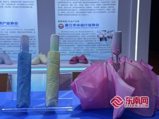 晋江市伞业行业协会展出的产品颜色尽显多巴胺风格。东南网记者 陈诗婷 摄