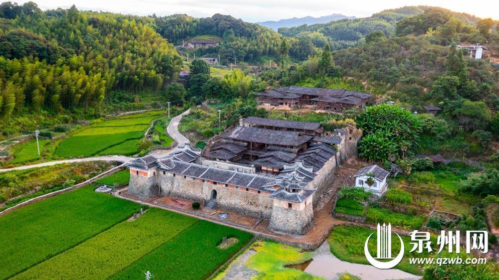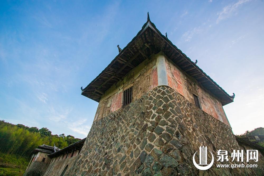 驱车40公里崎岖山路,德化县城烟火渐远,唯见群峰四合如翠屏。德化县水口镇祥光村内,厚德堡赫然矗立——楼堡依山而建,呈“虎下山”之势,前低后高,气势凛然,似将整片山野的警觉都凝结于石墙铁壁之中。
