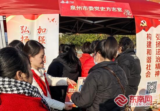 活动现场。郑丽云 供图 东南网1月10日讯(本网记者 吴雅艺 通讯员 郑丽云)2026年泉州市文化科技卫生“三下乡”集中服务活动于1月8日在泉港区峰尾镇举行。作为联办单位,泉州市委党史方志室组织党员志愿服务队参与开展此次活动。 活动中,泉州市委党史方志室向峰尾镇政府赠送党史方志类书籍300册,并设立宣传展位,开展多项史志文化宣传服务。广场上,泉州市委党史方志室的宣传展位前人头攒动,志愿服务队向群众赠阅《泉州乡村记忆》《红色故事“绘”——泉州革命英烈事迹宣传教育手册》等书籍和资料100余册;分发《地方志工作条例》《福建省红色文化遗存保护条例》等宣传材料100多份,用通俗易懂的语言解读文化保护政策;同步送出红色文化宣传袋、方志文化宣传扇、文明泉州宣传折页等宣传品200多份,将史志文化元素与实用功能巧妙融合,深受群众喜爱。