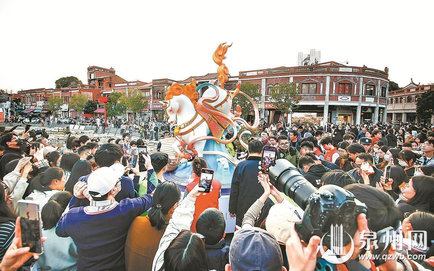 1月17日下午,备受关注的泉州古城马年生肖IP装置——“六合同风马”的第四匹骏马“天·召召”在泉州府文庙广场亮相,再度掀起市民、游客“追马”的热潮。承载着泉州传统文化和名人精神的马年生肖IP装置创作背后究竟有什么特殊故事?近日,记者专访文旅部门和专家,了解六匹骏马从构思到落地的全过程。 设计六骏各异承载英雄气魄 “今年,我们给予了设计团队更大的发挥空间。”鲤城区文旅局副局长林菲介绍,与往年追求统一画风不同,今年的“六合同风马”艺术装置在设计上大胆突破了原有框架,六匹马呈现出截然不同的气质——首匹亮相的“北·猛猛”,以硬朗机甲风彰显抗倭英雄俞大猷的凛然气概;以马可·波罗为灵感来源的“地·玩玩”活泼俏皮;“南·乐乐”则身披彩缎,看上去仙气飘逸;“天·召召”着力塑造郑成功收复台湾的雄健英姿。 “‘马’这个生肖本身大众的接受度比较高。今年我们想尝试不同的风格表达,看看市场的反响。”林菲介绍道,作为鲤城全力打造的四大文化IP之一,今年的马年生肖装置工作自去年4月正式启动,从理念构思到设计定稿,再到装置落地,经过长达半年多时间的打磨。“每年我们会优先确定IP的数量,以及我们想传播的文化内涵。”她介绍,今年的生肖IP选定“六合同风”的理念,出自《汉书·王吉传》里“春秋所以大一统者,六合同风,九州共贯也”,泛指天下各处风俗教化相同、文明精神互通,同时也寄予了祖国统一的美好期盼。 对于选定以泉州相关历史人物为设计原型,泉州历史文化中心副秘书长许长峰表示,“在历史长河里,泉州以海为媒、和合共生的文明基因,自古便是多元文明的交汇点,而它的精神图腾,正是由那些在惊涛骇浪中定义‘中国气度’的人物铸就。如郑成功的旗帜是家国情怀的丰碑,郑和的宝船是协和万邦的宣言,而关羽信俗则升腾着忠义精神的文化价值。”