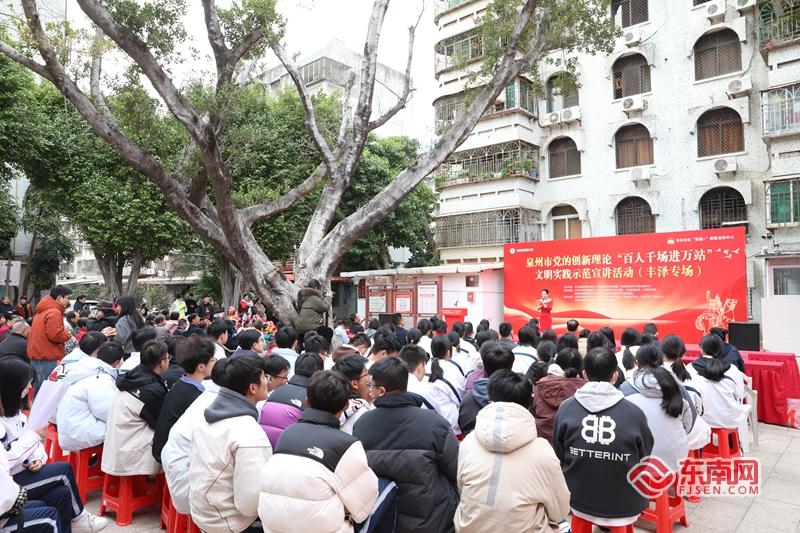 活动现场 东南网记者 吴雅艺 摄 东南网1月22日讯(本网记者 吴雅艺)为深入学习贯彻党的二十届四中全会精神,推动党的创新理论在基层落地生根、深入人心,1月21日下午,泉州市党的创新理论“百人千场进万站”文明实践示范宣讲活动(丰泽专场)在丰泽区泉秀街道华丰社区新时代文明实践站举行。 活动聚焦理论宣讲与文明实践,内容丰富、形式生动。丰泽区委常委、宣传部部长,区新时代文明实践中心办公室主任庄蓉梅作题为《全会精神指航向 文明实践添动能》的主题宣讲,为现场干部群众明确了学习践行全会精神的方向。随后,泉州市委讲师团新时代文明实践宣讲员童婷香对党的二十届四中全会精神进行了系统深入的解读,帮助大家进一步把握核心要义。丰泽区第二实验小学老师王迎迎以《簪花传文脉 实干谱新篇——从渔村蝶变看丰泽践悟全会精神》为题,将泉州丰泽独具特色的簪花文化作为切入点,通过讲述渔村面貌焕然一新的生动实践,深刻阐释了丰泽区如何以实际行动贯彻落实全会精神,推动地方发展与文化传承。活动现场,还为黄圣芷、许梓萱等十位同学颁发了丰泽区第二届“小小簪花推荐官”证书,鼓励青少年成为本土文化的传播者。泉州现代中学的同学们带来了深情朗诵《月光下的中国》,展现了青少年的家国情怀与昂扬风貌。 为切实将文明实践落到实处,活动期间还同步开展了“文明实践我行动 服务惠民暖民心”系列服务活动。现场邀请了多家相关单位及志愿服务团队,为居民提供了形式多样、贴近需求的便民惠民服务,让群众在感受到理论力量的同时,也能收获实实在在的便利与关怀。 |