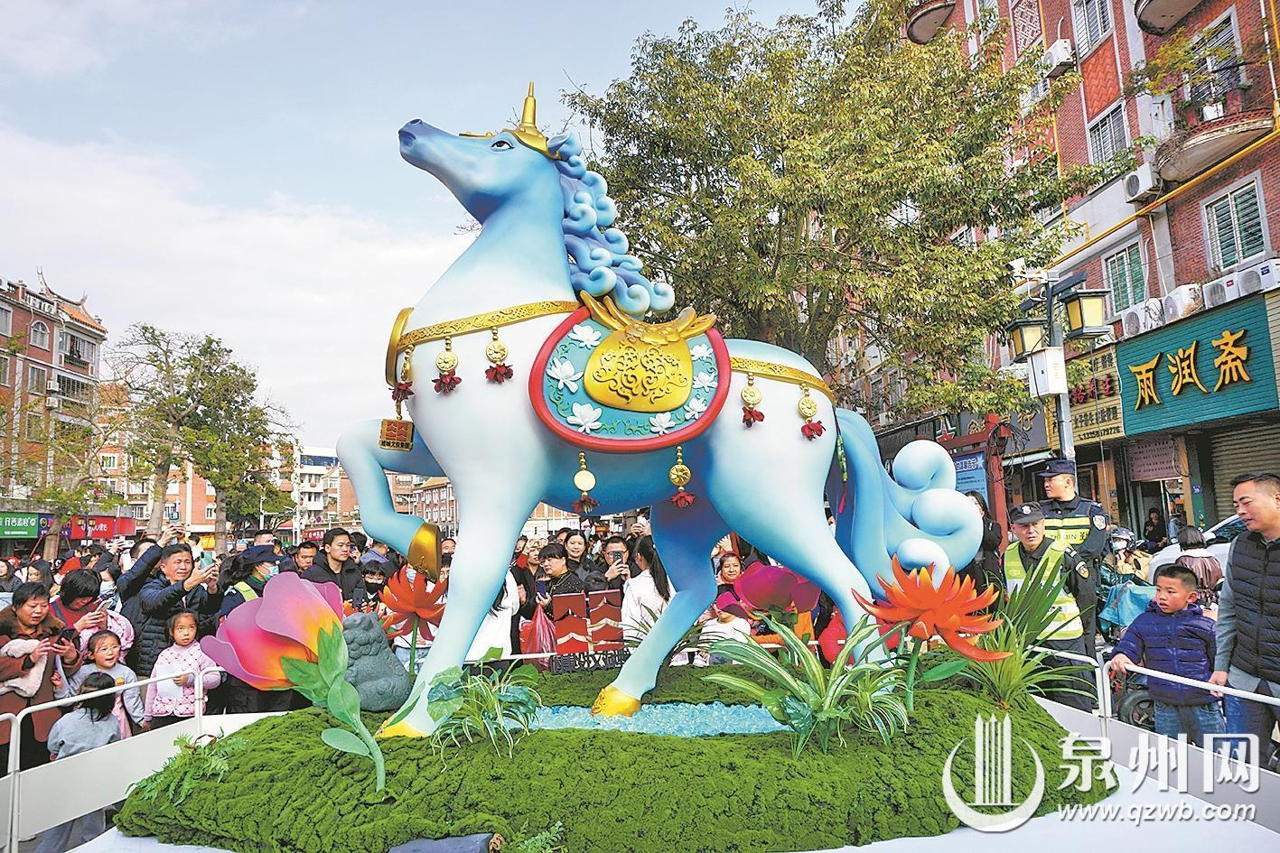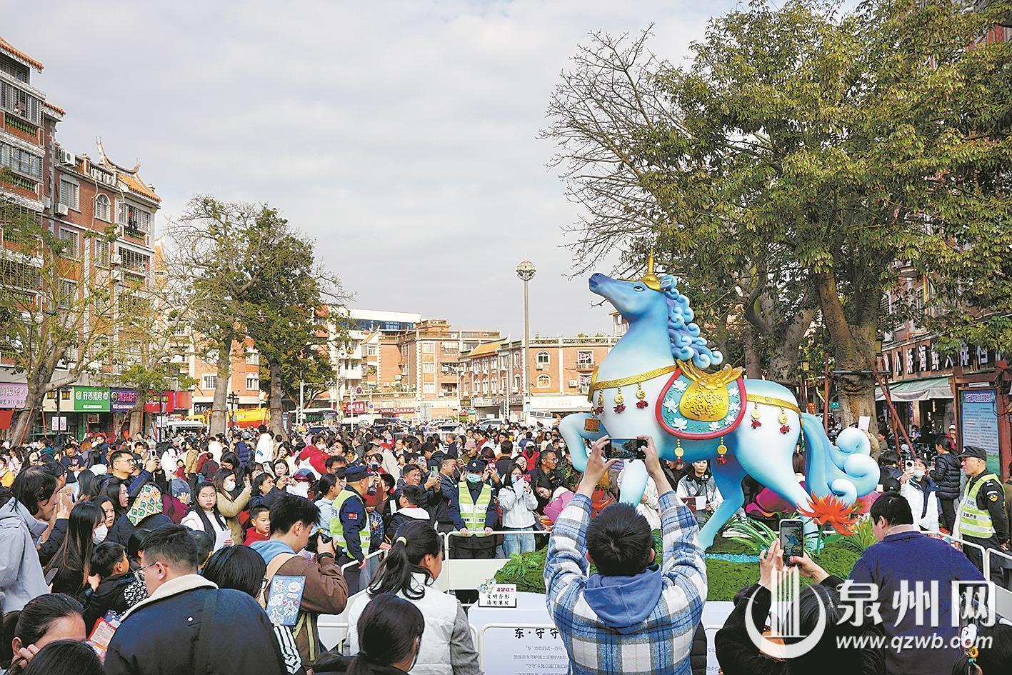 头戴将军头盔姿态稳健 下午3点多,鼓声响起,在众人的注目下与欢呼中,绸布揭开,“东·守守”露出真容,正式与市民、游客见面。 记者看到,“东・守守”通体海蓝色,姿态稳健。头戴将军头盔,深蓝与银白交织的鬃毛如汹涌的波涛,马尾系有宝岛造型玉佩,身佩“靖”字徽章,马鞍和全身装饰着凤凰花、闽南燕尾脊、刺桐花等花纹,底座则错落摆放着泉州滴水兽、台湾风狮爷、凤凰花、刺桐花等摆件,凤凰花还会开放。 活动现场,二胡演奏、传统剑术表演、机器马和机器人互动舞蹈等节目轮番上演,吸引了众多市民、游客驻足围观。主办方还准备了送春联、派发主题贴纸等互动环节,现场气氛热烈,笑语不断。 “东・守守”寓意“守土有责” 鲤城区文旅局有关负责人介绍说,“东・守守”的设计灵感来源于清代名将施琅率军收复台湾、坚决护台守台、捍卫国家统一的历史功绩,其整体以沉稳的“海疆蓝”为主色,马鬃与马尾塑造为层叠的海浪形态,呼应着施琅将军的水师统帅身份。设计细节处处蕴含巧思,“东・守守”的头盔样式复刻自晋江衙口的施琅将军雕塑,尽显威严庄重之感;右眼角的一道灼灼的“火纹”,象征着施琅将军在澎湖海战中负伤后仍坚持指挥、力克强敌的坚定意志;颈间挂着“靖”字徽章,彰显着“靖海侯”的荣光;马鞍与铠甲纹饰则融入了刺桐花、燕尾脊等闽南元素,既体现了两岸同根同源、血脉相连的深厚情谊,也寄托着两岸人民对和平团圆的深切期盼。 芳草园,位于泉州鲤城区新门街西段,始建于清康熙年间,距今已有300多年历史,是靖海侯施琅将军在泉州创建的春、夏、秋、冬四季花园中的春园。园内目前建有崇正书院、“三洲芳草”牌坊、涵碧亭等景点。漫步园内,树木郁郁葱葱,榕树、龙眼树、玉兰树、棕榈等婀娜多姿,参差交错,留出游赏、玩乐、休憩的宽阔空间。园中还利用原有的地形,堆土造坡,孤植造型榕桩,普遍种植香樟、桂花等香化乔木,辅以大量草坪以及各类花灌木,满眼翠绿,满园神奇。“城市山林”的郊野气息,让你仿佛“回归自然”,感到舒心惬意。 该负责人说,“东・守守”寓意“守土有责”,放至芳草园,形成历史与当代的对话,既呼应施琅将军捍卫疆土的使命,也象征泉州人守护根脉、心系家园的深厚情怀。 “六合同风马”已全部亮相 据了解,“六合同风”出自《汉书·王吉传》,原指天地四方(天、地、东、南、西、北)包容一统,体现了中华文化对“天下归心、文化一统”的理想追求。六匹骏马分别命名为“天·召召”“地·玩玩”“东·守守”“南·乐乐”“西·鲤鲤”“北·猛猛”,造型各异、内涵有别,但都承载着对国家统一、社会和谐的美好期许,与泉州“开放包容、多元共生”的城市特质相契合。 随着“东·守守”的亮相,“六合同风马”已全部就位,各自点位为:“天·召召”位于泉州府文庙广场,“地·玩玩”位于泉州西街钟楼,“东·守守”位于泉州芳草园广场,“南·乐乐”位于泉州德济门遗址广场,“西·鲤鲤”位于泉州通淮关岳庙,“北·猛猛”位于泉州泉山门广场。(泉州晚报融媒体记者 王金植 宋尧 文/图) |