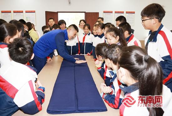 同学们学习内务整理知识。陈英杰 摄 东南网1月28日讯(通讯员 陈英杰)近日,晋光小学五年5班的同学们走进晋江消防救援大队长兴路消防救援站,开启了一场生动的消防安全研学活动,了解和体验消防救援器械设备和学习应急救援知识。 |