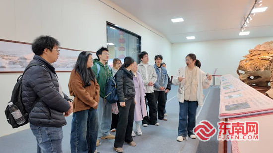 图为讲解员为实践队讲解《京杭大运河》木雕。 一场探访,一程收获。此次非遗寻访活动,让实践队成员对莆田木雕技艺的千年积淀与当下生机有了深刻感悟。大家一致认为,要发挥专业优势,以镜头定格匠心、以传播延续文脉,为非遗技艺的传承创新注入青春力量,让古老的传统工艺在新时代熠熠生辉。(通讯员 向仕文 吴智敏 吴易蓉/文张怡晨 苏思盈/图) |