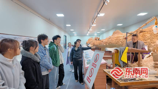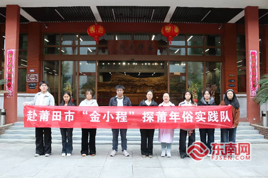 图为实践队合影。 日前,福建农林大学金山学院“金小程”探莆年俗实践队走进郑春辉木雕艺术工坊,开展国家级非物质文化遗产莆田木雕的专题调研活动。队员们通过实地观摩、现场交流、作品讲解等方式,深入感受木雕技艺的精湛与传统工艺的时代传承。