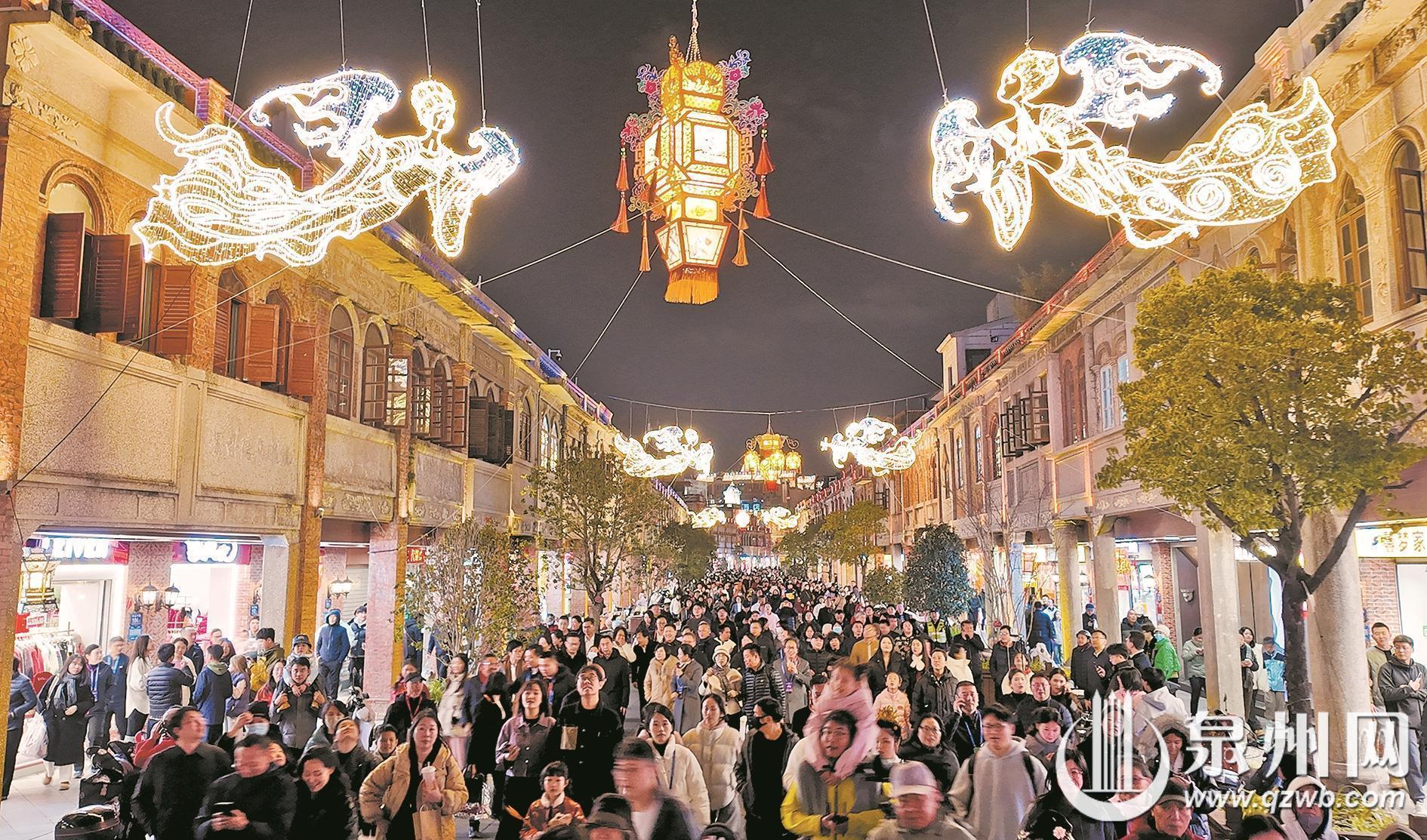 华灯初上,古城焕彩。1月28日晚,“千灯映古城”活动在泉州古城正式拉开帷幕,“妙音飞天”立体灯组亮灯仪式、“刺桐幻幕”演出、通政巷刺桐花灯亮灯等活动轮番登场,用光影串联文脉,以非遗点亮新春,让“光明之城”重现“火树银花映刺桐”的盛景,为丙午马年新春提前铺就浓郁的闽南年味。