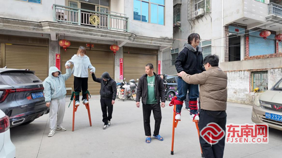 图为非遗传承人陈煌歆老师为实践队讲解红团。 午后,实践队走进登瀛村,探访省级非物质文化遗产——登瀛高跷。高跷队员们脚踩高跷、扮作戏中人物,在村巷间演绎流动的戏剧。传承人黄建清老师向队员们介绍了登瀛高跷数百年的历史渊源、表演程式与训练艰辛。这项融合体育、舞蹈与戏剧的民间艺术,不仅是当地节庆中营造欢腾氛围的重要形式,也彰显了莆田人民乐观向上的精神风貌。