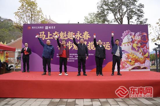 启动仪式。林艺颖 摄 东南网2月1日讯(本网记者 施远圻 通讯员 颜彩虹)2月1日上午,“马上夺魁趣永春”新春畅游徒步活动在永春魁星岩风景区举办。近千名返乡大学生、亲子家庭及徒步爱好者齐聚于此,穿梭于人文古迹与青山秀水之间,开启了一场运动活力与人文底蕴深度交融的新春文旅盛宴。