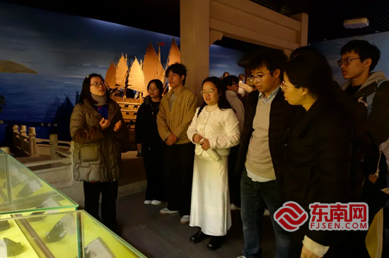 图为实践队成员参观妈祖文化展示馆。 实践队还走访了“捏海技艺”非遗传承人李细萍的工坊。在传承人指导下,队员们亲手体验了以面塑制作海洋生物的传统手艺。这项技艺融合民间智慧与生态理念,展现出人与自然和谐共生的文化意识,也让队员们领略到非遗在当代的创新传承。