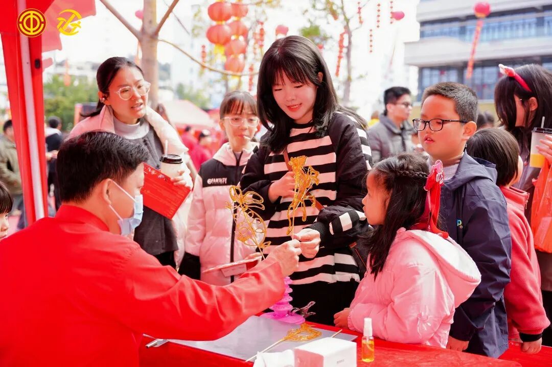 左右滑动查看更多 启动仪式后,现场隆重开展新春游园活动。职工与居民朋友手持通关文牒,兴致盎然地穿梭打卡、踊跃集章。非遗体验区人头攒动,漆扇制作、妆糕人捏制等传统技艺展现;美食摊位前香气氤氲,醋肉、牛肉羹、炸枣、浮粿等特色小吃琳琅满目;趣味游戏区笑语盈盈,圈圈套马、欢乐袋袋碰等游园项目吸引大人小孩齐参与,欢呼声此起彼伏,处处洋溢着喜庆热闹的新春氛围。