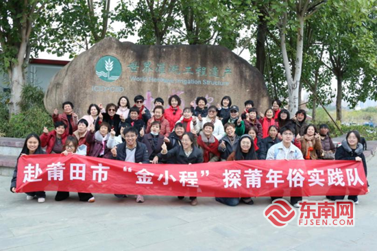 图为实践队与老年团在木兰陂合影。 实践队走进木雕非遗基地,一幅未完成的《百里兰溪图》木雕长卷映入眼帘,震撼人心。该作品以精湛木艺定格木兰溪治理后的现代新貌,匠人精雕细琢的刀痕中,尽显对母亲河蝶变的赞颂与非遗匠心。众人驻足聆听匠人讲解创作历程,读懂了“治水初心”与“非遗匠心”的同频共振——皆是以久久为功的坚守,打磨出经得起时光检验的成果。