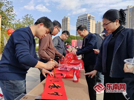 书法爱好者挥毫泼墨,将“文明”“平安”“反诈”等元素融入春联,把新春祝福与文明期许一并送到群众手中。主办方 供图 |