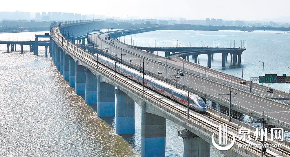 春节临近,大家归心似箭。在福厦高铁泉州湾跨海大桥上,高铁列车和汽车“赛跑”、朝着家的方向一路飞驰的模样令网友感叹:好可爱的春运图景。