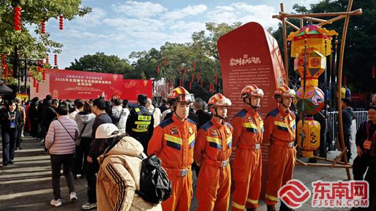 鲤城区古城消防救援站青年突击队在府文庙“2026年全国春节文化和旅游消费月·主场活动”执勤安保。泉州团市委 供图