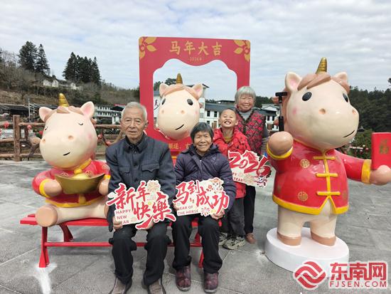 群众在“马年吉祥物打卡点”拍照留影。春美乡 供图 |