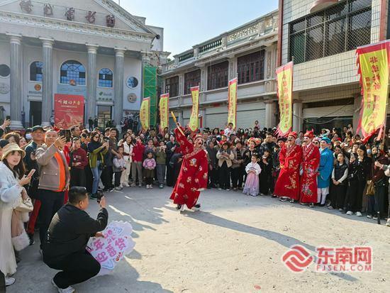 民俗踩街活动吸引大量游客市民围观。东南网记者 陈诗婷 摄 |
