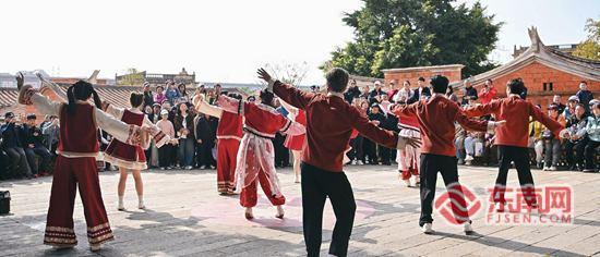 位于晋江的梧林传统村落,古厝红墙下,歌舞庆新春。梧林供图 这份年味,更藏在满城的非遗展演里。作为坐拥8项世界级非遗、36项国家级非遗的城市,泉州让传统文化走出展馆,走进新春的街头巷尾。春节元宵期间,超300场演艺活动覆盖城乡,中山路、蟳埔等40条地标街区,280多场次非遗展演轮番上演,提线木偶戏的灵动、梨园戏的婉转、南音的悠扬,让市民游客驻足聆听,近距离触摸闽南文化的根脉。 古城的新貌,更让这份年味多了几分精致。再次走进中山路的泉港游客施女士直呼眼前一亮:“路面干净了,骑楼的美完全展现出来,看着特别舒服。”入夜后的古城,更是流光溢彩,朝天门、南俊路、威远楼的夜景全新升级,闽南古厝元素与现代光影碰撞,“福”字装置、马年灯饰、“龙马精神”巨型花灯点亮夜空,中山路的“妙音飞天”、通政巷的刺桐花灯一步一景,漫步其中,仿佛走进了闽南特色的光影新春画卷。 一城年味融全域 暖心温情满泉城 泉州的年味,从来不是独属于一城的热闹,而是融于全域的欢腾,更藏在街头巷尾的暖心细节里。走在古城的每一个角落,“六大免费服务”的标识随处可见,72个公益奉茶点冒着热气,一杯热茶递到游客手中,递出的是泉州人的善意与温情;105场世遗点公益讲解,让八方来客在逛古城、看表演的同时,读懂千年世遗的历史底蕴。 以食为媒,泉州的年味更在舌尖。古城的“非遗美食长廊”里,姜母鸭、面线糊、海蛎煎等闽南特色美食齐聚,摊主的吆喝声、食客的赞叹声交织,一口热乎的美食入腹,便是最踏实的新春幸福感。百万颗定制世遗巧克力免费派送,甜意在舌尖化开,也让这份泉州的暖心与诚意,留在了每一位游客的心里。