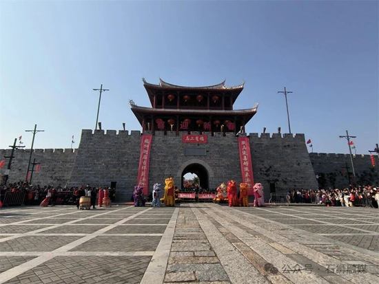 清晨的永宁古卫城早已被喜庆的红色包裹,广场上“喜迎新春”的巨幅大字与红灯笼、福狮装饰交相辉映,处处洋溢着热烈的节日氛围。八面威风大鼓整齐排列,不少市民游客早早到场争相击鼓祈福,浑厚有力的鼓声此起彼伏,响彻古城上空。老人带着孩童轻敲鼓面,年轻人奋力击鼓迎新,欢声笑语间,最质朴的年味在青砖黛瓦间缓缓流淌。 下午3时,作为活动核心的开城迎福仪式在这座拥有600年历史的明代海防古城正式开启,马跃山河、金戈铁马、赐福迎宾、开城启福、入城迎福五大精彩篇章依次上演,打造超燃仪式感,现场人山人海,气氛热烈非凡。首先登场的女子旗舞表演《马跃山河》场面壮观,演员们英姿飒爽,鼓点铿锵,瞬间点燃全场新春热情。随后,永宁卫鸳鸯阵列阵呼号环节震撼上演,旌旗猎猎,号角齐鸣,战鼓铿锵,将士们整齐列阵、齐声呼号恭迎将军登场,重现古代军旅盛景,让参与者仿佛穿越历史长河,真切感受永宁卫的沧桑与威严。 “一点金睛,万象更新。”福狮点睛仪式成为本场活动的重头戏。六只瑞狮踏风而来,带着马年的蓬勃朝气与永宁古卫城的平安祈愿,点睛嘉宾为福狮点睛赐福,祈愿人们在丙午马年龙马精神、福暖四季。城门春联揭幕环节同样引人注目,“福狮迎春吉祥到,骏马送喜好运来”的巨幅红联高挂城门,领导与嘉宾共同揭幕,城门缓缓开启,寓意马上有福、开城大吉。 |