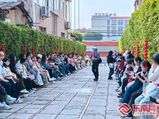 研学现场。开元街道 供图 研学途中,队伍还走进街边“七小业态”店铺,凭专属优惠券感受古城街巷的烟火气息。文化行走与市井温情的交融,让这场研学多了一层生活的温度。 “原来家门口藏着这么多故事!”带着孩子参加活动的家长陈女士感慨,孩子边走边学,既增长了见识,又真正体会到传统文化的魅力。来自南昌医学院的大三学生苏冰莹则是第一次参与古城研学,“这些泉州人文故事给我们带来许多新奇体验,也让我们更加坚定文化自信。”
